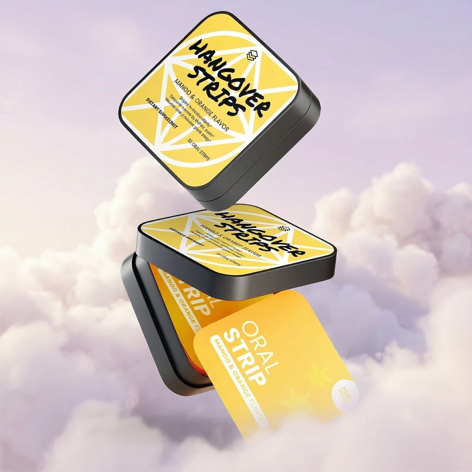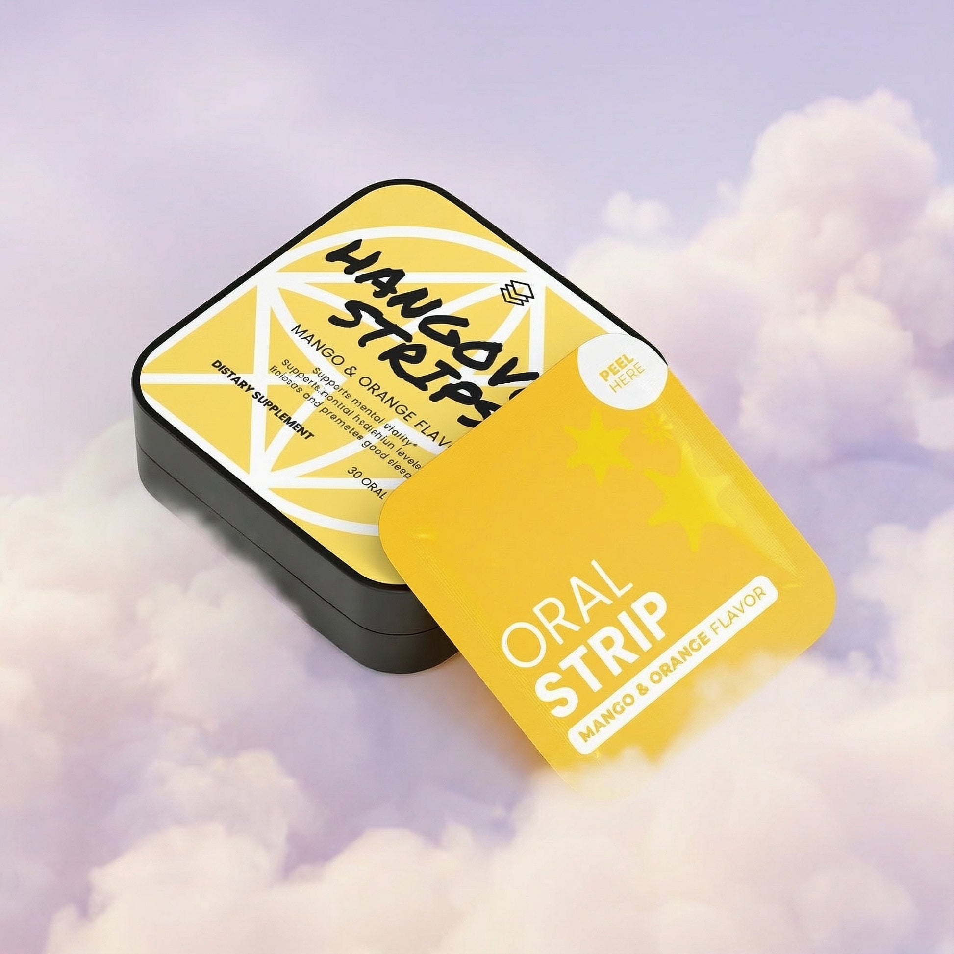 Curcuma Longa (curcumin), Cichorium Intybus, and Phyllanthus Emblica, which are associated with promoting normal inflammatory response in the body. These oral strips are formulated to provide potential support from common hangover symptoms.